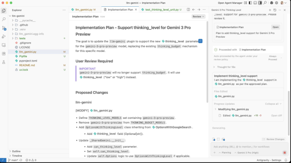La capacidad de edición contextual y planificación de implementaciones era una de las características más valoradas de Antigravity, pero los bloqueos de cuota han convertido estas funcionalidades en inaccesibles para muchos usuarios durante días completos. Foto: Simon Willison.