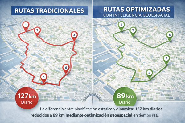 La optimización de rutas mediante inteligencia geoespacial ya no es ventaja competitiva: está convirtiéndose en requisito básico para operar eficientemente en logística urbana.