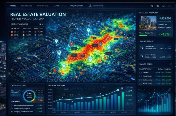 El output final es un score predictivo: una calificación numérica que evalúa el potencial de plusvalía de cualquier coordenada geográfica. Las plataformas de inversión inmobiliaria inteligente pueden evaluar miles de terrenos simultáneamente, ranqueando oportunidades objetivamente.